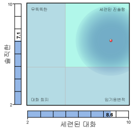 반면 매우 솔직하지만 세련된 대화 특질이 부족한 사람은 매우 <무뚝뚝한 BLUNT> 모습을 보이고, 세련된 대화 특질은 지니고 있지만 전혀 솔직하지 않은 사람은 <임기응변적EVASIVE>인 것으로 보일 것이다. 전자의 패턴은 “공격적 불균형”의 예이고, 후자의 패턴은 “방어적 불균형”의 예이다. 두 경우 모두 불균형은 자신과 다른 사람들 사이에 거리를 만들고, 다른 사람들과의 관계에서 의사소통에 왜곡과 오해를 초래할 수 있다.