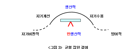 보완적 특질 쌍이 모두 약한 것을 “균형 잡힌 결여”라고 부른다. <그림 3>에서 보는 바와 같이 균형 잡힌 결여는 효과적으로 대응할 수 있는 능력이 부족한 것을 나타낸다. 예를 들면 <자기수용>과 <자기개선>이 결여된 사람은 자기비판적일 뿐만 아니라 방어적이고, 개선해야 할 부분의 해결을 두려워한다.